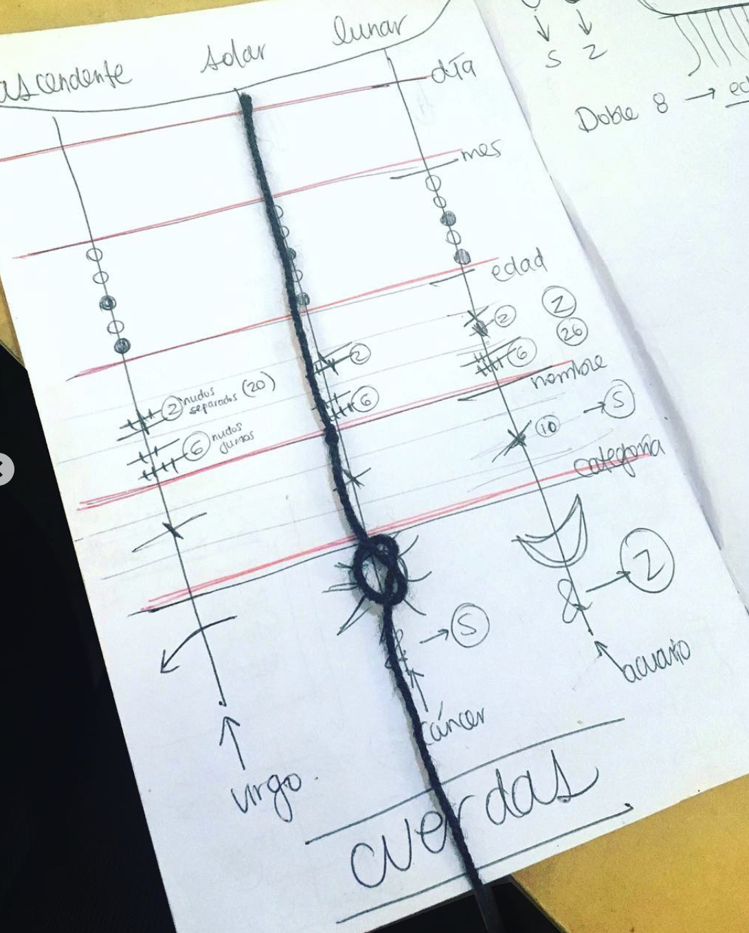 La investigación y recopilación de datos históricos y arqueológicos que concluyó con la obra Khipu, comenzó en el año 2013 con la visita del Museo Etnológico de Berlín, donde se almacenan la mayoría de los khipus que fueron extraídos de su territorio originario. Luego, en el año 2014 fueron visitados el Museo Nacional de Arqueología, Antropología e Historia del Perú, Lima y el Museo Inca de Cusco. Además, se tuvo acceso a textos en español sobre los khipus.